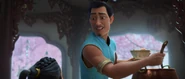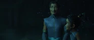 As the Dragon Gem's pieces are put back in place with the Dragon Gem restored, everyone petrified by the Druun is restored back to normal form just as Benja happily reunites with Raya, who sees her after the Druun are wiped away from the power of the Gem. Benja then sees Sisu just as she tells him that his daughter saved Kumandra just as she tells him that she brought him friends. Everyone else (including the rest of the tribes Benja talked to) is welcomed to Kumandra in rejoice upon approaching Raya's father.
