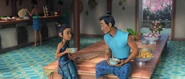As a young Raya enters a cave containing the sacred Dragon Gem, Benja prevents his daughter from touching. In order to prepare Raya for her adventure, Benja trains with his daughter to help her practice becoming protector of the Gem by engaging in a combat. After a tough training, he declares his daughter as the Guardian of the Dragon Gem. He then explains that for generations, his family has sworn to protect the Gem as he explains to Raya that she will join the legacy.