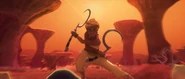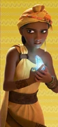 The Chieftess of Tail is a minor character of Disney’s 2021 film, Raya and the Last Dragon. Her name is never revealed. She accepts Chief Benja's invitation to Heart but assumes that he's going to rob the other four lands. The Chieftess mocks the idea of Kumandra. When the Dragon Gem shatters, the Chieftess of Tail takes a shard and runs away. She boobytraps her throne room and falls victim to her traps, breaking the bridge that connects the tree island to the exit. The next time she's seen, she's a skeleton in a tree, the Dragon Gem shard still in her hand. It's implied that she slowly starved to death, alone.