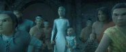 Virana then tells the children about the history of the kingdom which rose to protect the kingdom from monsters despite the kingdom's size just as Namaari explains to her mother that she saw Sisu in the kingdom just as she explains to her daughter that if she had the dragon and then had all the gem pieces together, everything would be forgiven and Kumandra would be saved and the most importantly is to keep the people of Fang safe. The next day, Virana notices the Druun arriving back at Fang which is caused when Sisu died at the hands of Namaari. As the Druun continue plaguing Kumandra, Virana is petrified along with everyone at Kumandra, as the gem's magic fades away.
